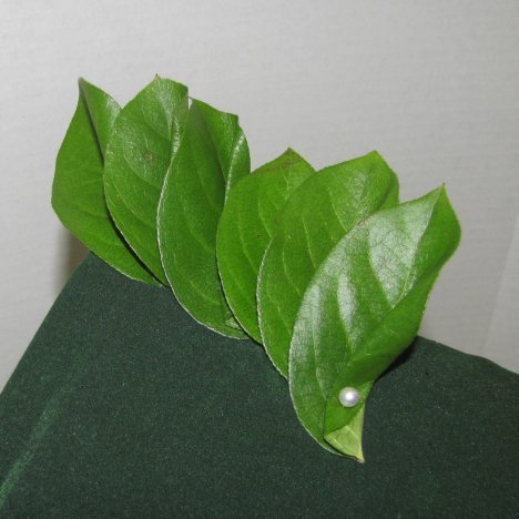 I'm going to take these leaves off one by one and add to the bouquet holder with straight pearl headed corsage pins or shorter pixi pins.
