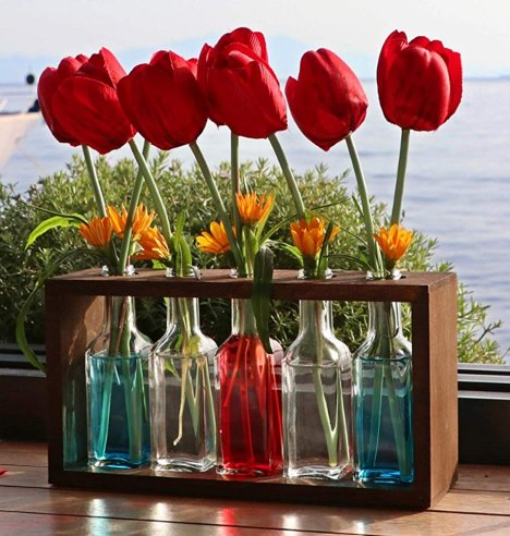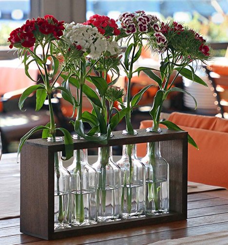 Simple wedding centerpieces like these are so versatile. Each individual bud vase needs only a single stem of flower and you can mix and match them as you like!