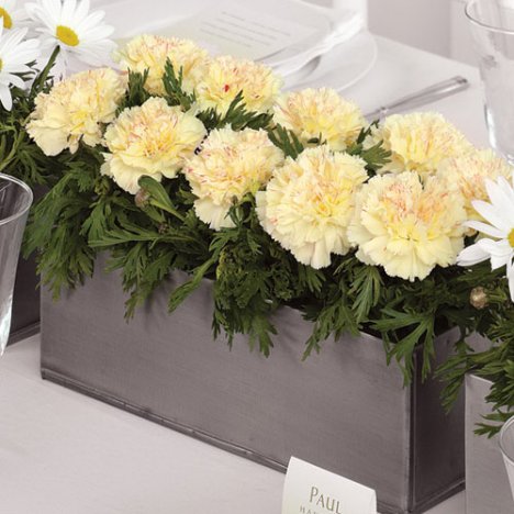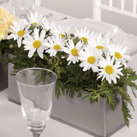 Simple wedding centerpieces like these are made in a trough container (that means long and rectangular). You need to be sure to choose one with a liner so it doesn't leak out on your wedding tables.
