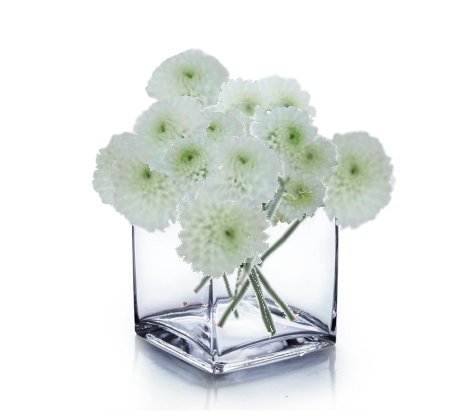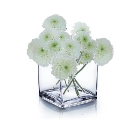 These square vase centerpieces are so simple you can actually insert the flowers in minutes once you've gotten the hang of it! Continue adding more stems, taking care not to dislodge the earlier stem insertions.