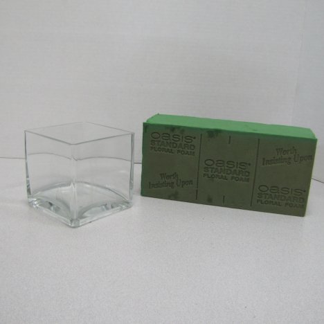 A simple square vase, rectangle vase or round cylinder will work for this type of arrangement. I'm going to fill it with florist foam because it holds bulky christmas evergreens in place and gives them a continual source of water.