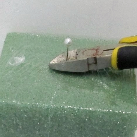 Stephanotis bouquets often have a dainty accent of pearl in the center of each flower head. You will need to cut the shank of corsage pins down to size. Pearl headed pins come in many different colors.
