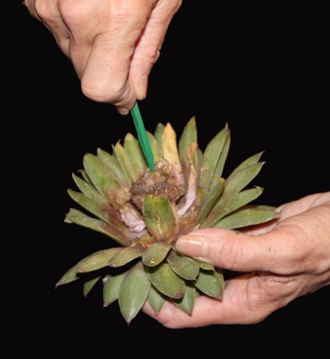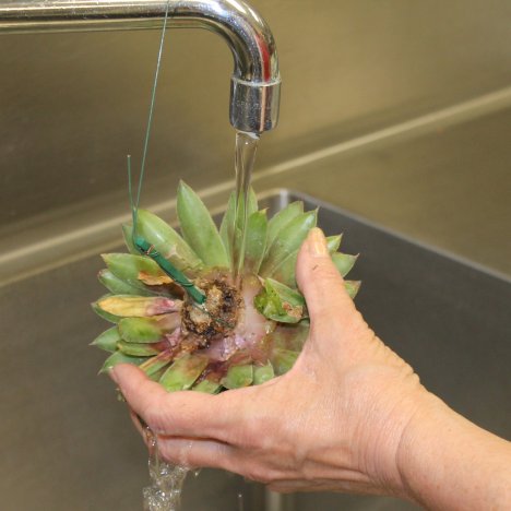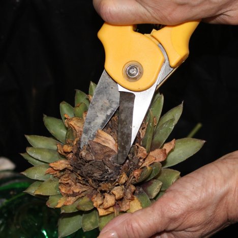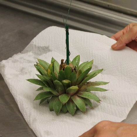 Keep in mind that succulent bouquets are hardy enough to re-root, if you want to make a living keepsake of them for later. Use a sharp knife or florist bunch cutters to level the underside of the bloom.