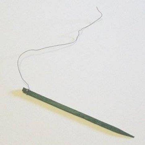 I then threaded a stiff wire through the lower section, and bent it down parallel to the wood pick.