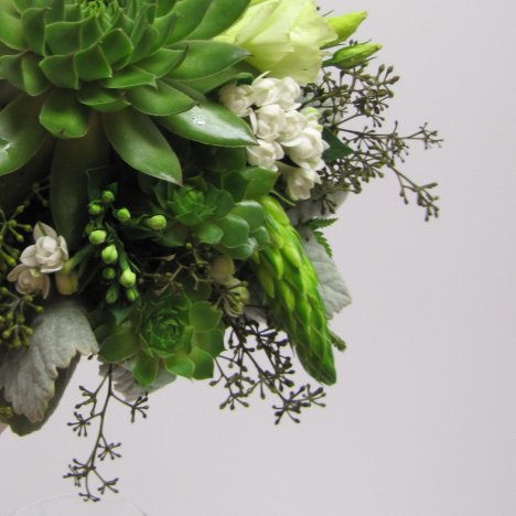 I wired it to support the stem and then inserted it into the lower right, in between the smaller succulants and the bouvardia.