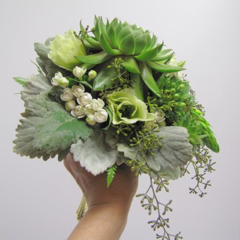 This succulent bouquet is quickly finishing up. I can't resist (because I don't like to waste ANY part of flowers) and I had the top of a Star of Bethlehem that had popped off it's stem. Why not? So I decided to use it in this bouquet.