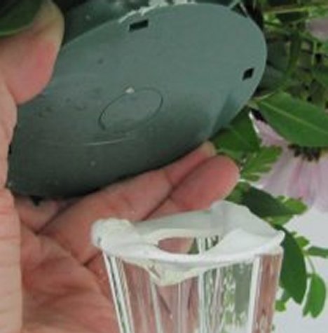 O'Dapter bowls, on the other hand, definitely are meant for taper candelabras. Their base has a plug the same size as taper candles. They use cylinder oasis or simply a half brick of wet Oasis pressed down firmly on top of the bowl and then cut away to fit. Either way is perfectly fine