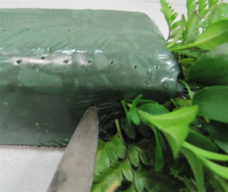 Here is a closeup showing how I pierce the film with the point of my knife to insert the different stems of the greens.