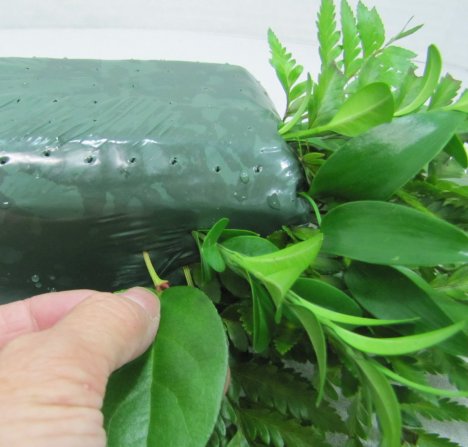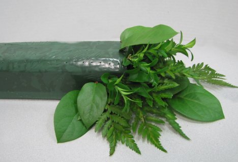 Here is the combination of leather leaf, boxwood and salal leaves.