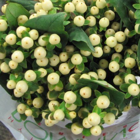 I'm also using white hypericum berries to add contrast and interest to the centerpieces.