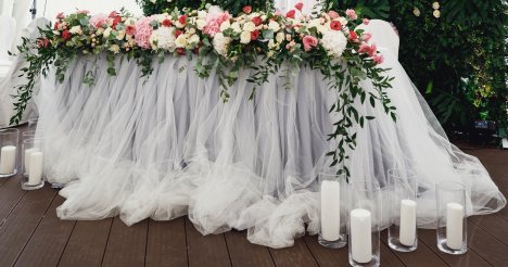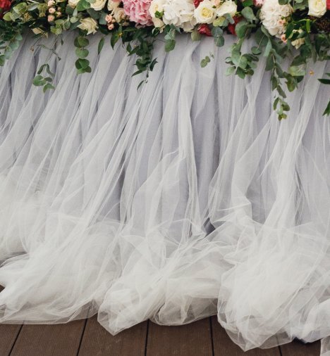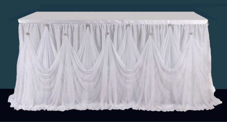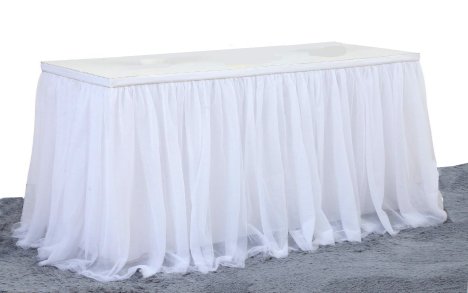 Table skirting designs made with tulle take a little more care. Tulle crushes easily, so you must take the time to steam out any wrinkles in the skirting. You can order tulle skirting online, but take the time to read the entire description (including the reviews!) The photos may show a lush, full skirt ... but what you receive may not even look close to the picture.