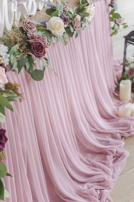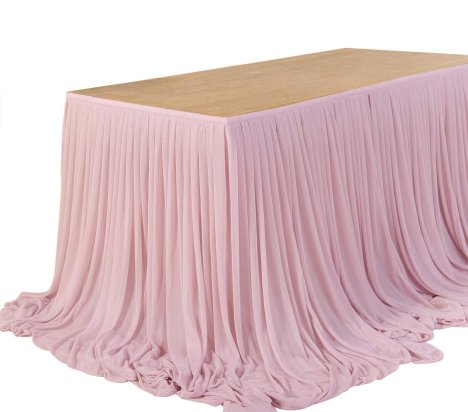 Two layers make this dusty rose color table skirting an amazing feel and overall look.