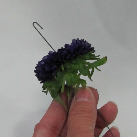 Pull the wire down gently until the hook is buried into the center of the flower.