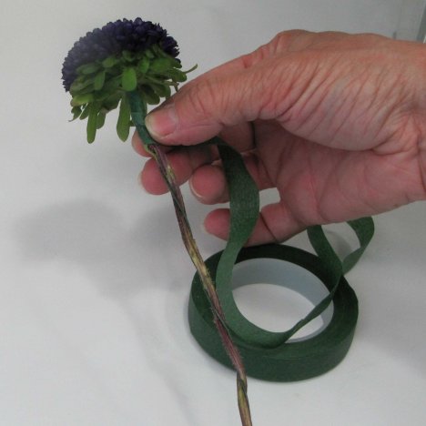Green floral tape can then be wound down the stem, helping to conceal the wire.
