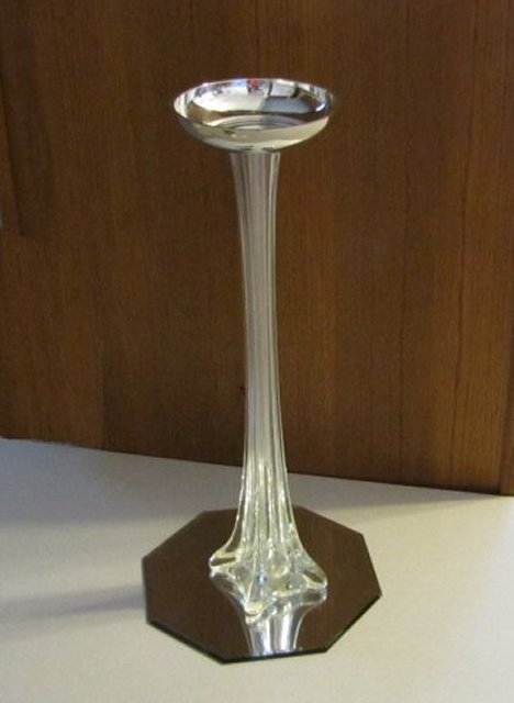 You can attach this bowl to the vase neck by using the same Lomey Pedestal rod as shown before. Glue the flower bowl to the flat disk on top of the extension with either Lomey glue (made especially for these Design System pieces) or using white floral clay.