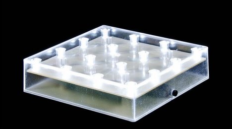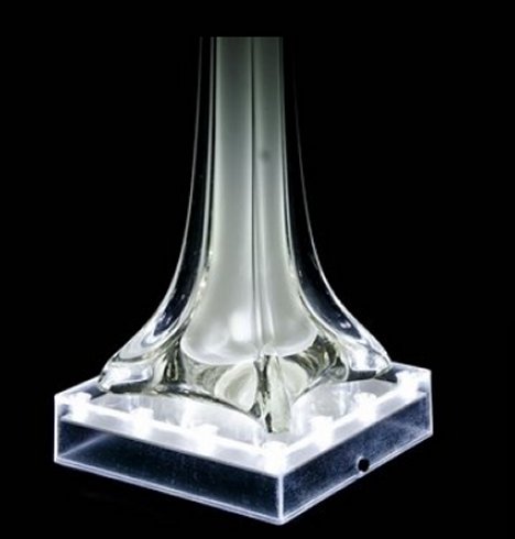 If you want your tower vases to glow in the dark, these LED light base is square and the perfect size to fit the base. You need to still use the floral clay, gluing the vase to the light and the light to the mirror.