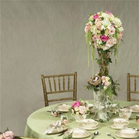 The wedding topiary is all about elevating a heavy weight of flowers and wet florist foam above the table top. This is why the mechanics is the most important part. You need to take precautions that the centerpiece stands straight and is not easily toppled over onto a guest's lap!