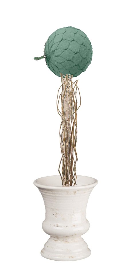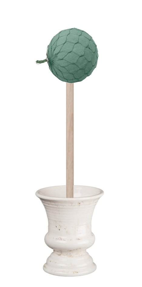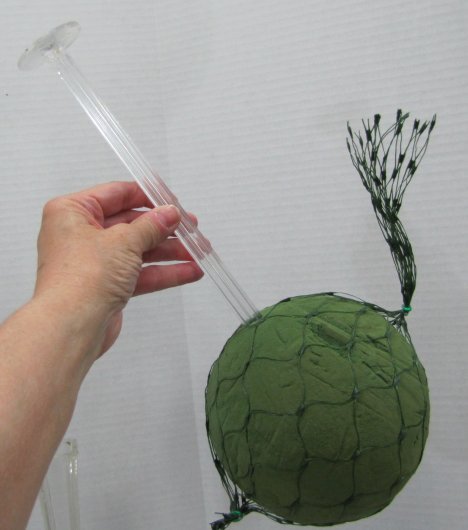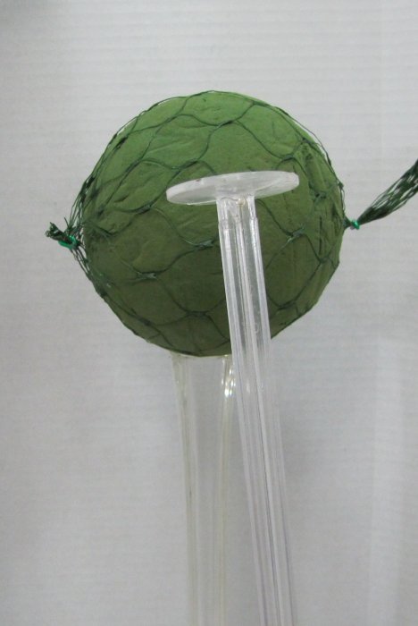 If you want to create a fresh flower topiary, you need to start with an Florist Foam Sphere. You can used an plain sphere, but will have to tape it with supporting waterproof tape. It is much easier to use the Oasis Netted Sphere, which helps keep the foam from crumbling and keep the heavy water saturated foam from sliding down the support pole.