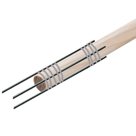 Prepare the bottom of dowel rod by securely taping the 12" wooden stakes to the rod with the waterproof tape on both ends (especially above the water soaked foam). The stakes help grip into the florist foam of both the Oasis sphere and the Oasis Brick and helps prevent the dowel from "rocking" in the foam (which can wallow out the hole and make the topiary wobbly.)