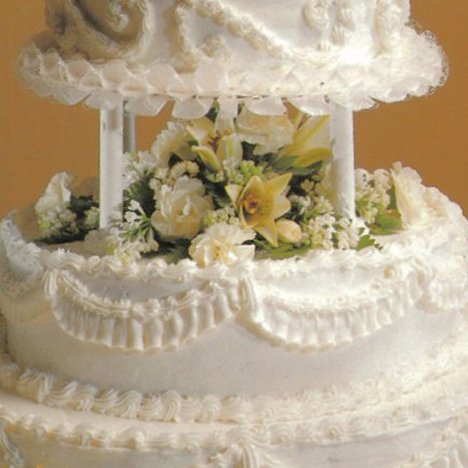 If your cake topper is heavy, warn the cake decorator to put in supporting dowel rods so it can the top without sinking into the cake.