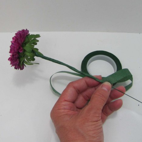 Tape down the stem of the aster, concealing the wire that is parallel to the stem.