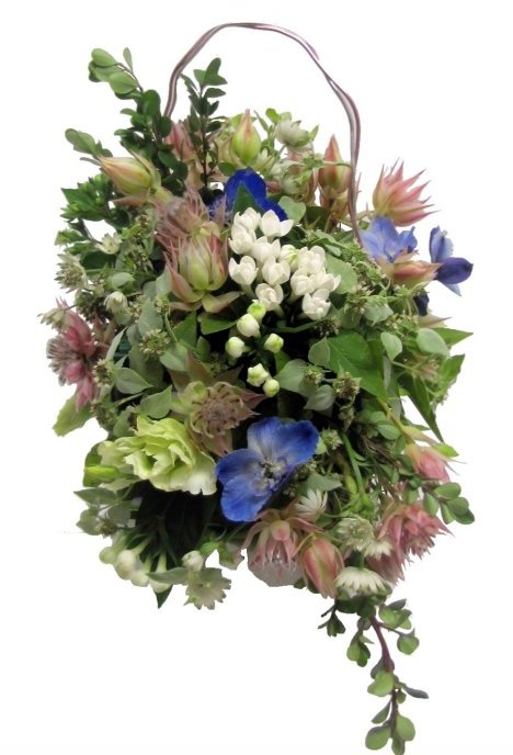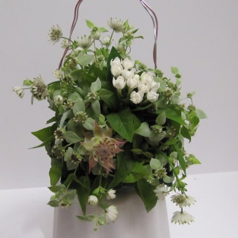 In this particular design I used an Oasis corso cage. This simply means a plastic cage that used 1/2 brick of Oasis florist foam. Florists can reuse these again if they wish.
