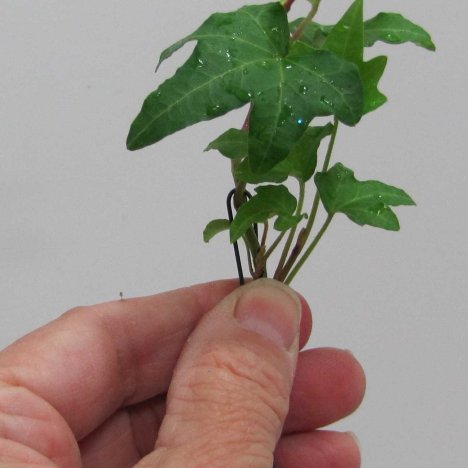 Hook the wire into a hairpin shape and pull down over a lateral of the ivy and then tape securely.