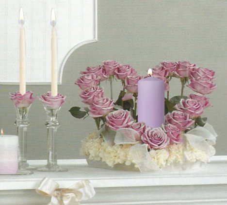 The unity candle ceremony is a special way to bond as husband and wife after the vows have been said. This is a unique way to surround the candles with a three dimensional heart shaped wreath and rose candle stands.