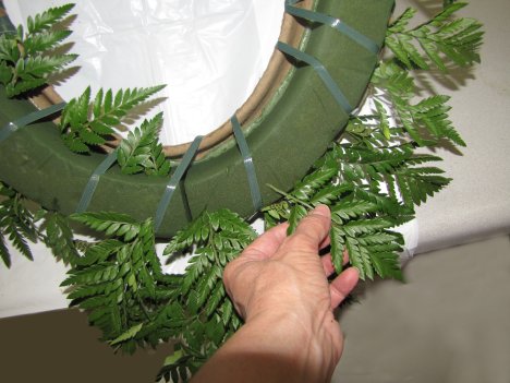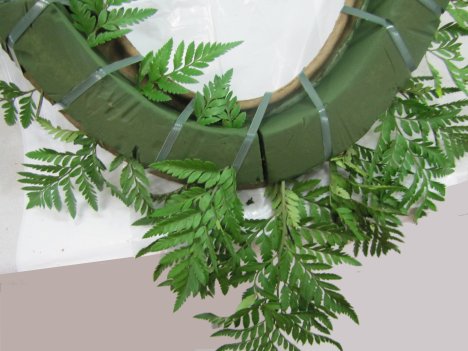 If you want a larger wreath, simply lengthen the stems of the leather leaf to be longer cuts. The bigger you want your wreath to be, the more leather leaf fern you'll need.