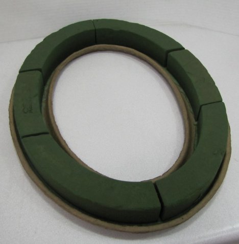 The foam wreath will be heavy once complete filled with water and ready to design. The backing is made of a heavy pressed paper product called mache. It is thick and sturdy and allows us to score the covering and "break" the foam, to create the dropped table edge this design calls for.