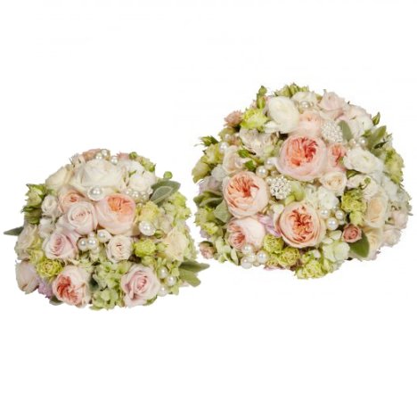 This Victorian centerpiece has the charm of old fashioned elegance to it. Different sizes of both tea roses and garden roses, velvety lamb's ear brings in a frosted green touch that you'll love on your wedding reception or bridal shower tables.