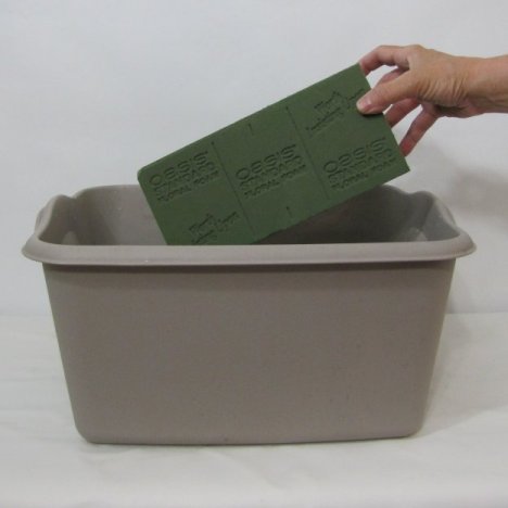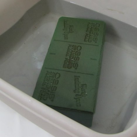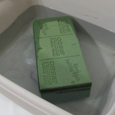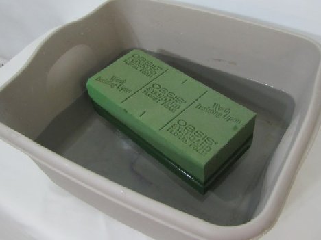 The first step in flower designing is to always process your flowers correctly (making sure they are hydrated immediately upon arrival. The next step is to soak your florist foam in water that has had professional florist food added.