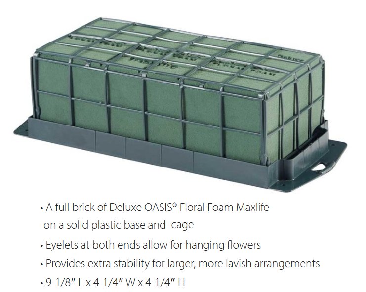 The Grande Floracage is bigger, and works well for larger side or corner arrangements. Remember, more foam has more moisture, thus supporting more flowers.