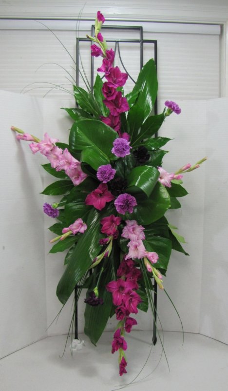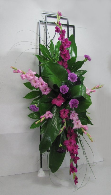 Check over your final design. If you don't want the longer, spray look - keep your flower stems shorter and more evenly spaced over the raquette.