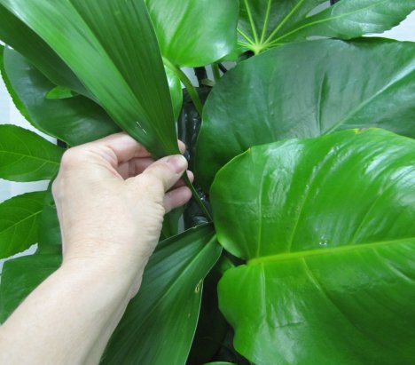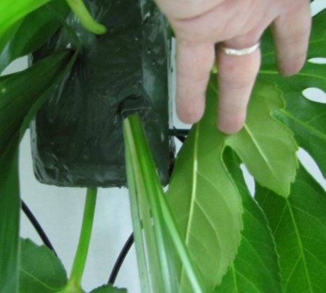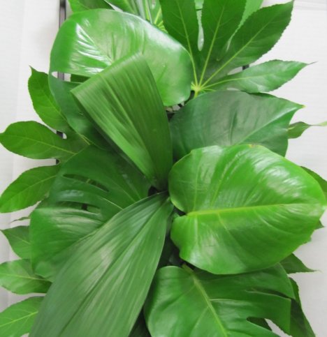As you can see - there is still plenty of foam space to add in thick stemmed flowers. These bigger leaves cover up the mechanics quicker than smaller leaf varieties.
