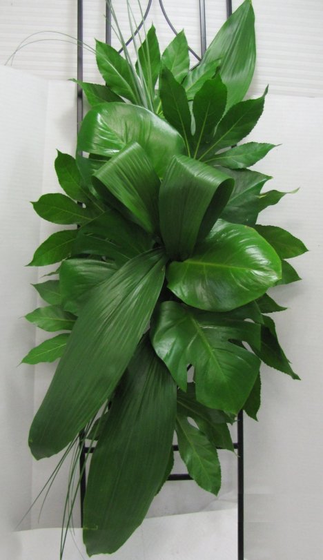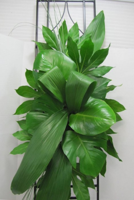 See how the Ti leaves almost have a folded "ribbon" look in the center? Creative texturing is part of floral design, mixing and matching greenery to have a three dimensional look before inserting your flowers.