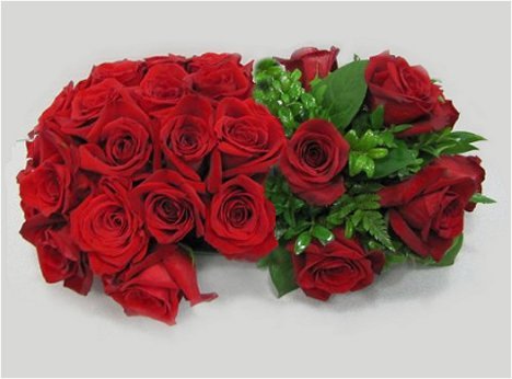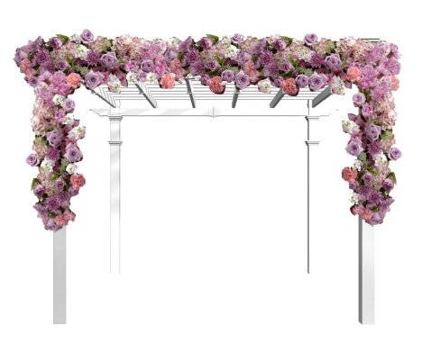Shown below are massed flower heads on on end - mixed greenery and flower heads on the other end. You can have the massed look - but bring down the cost by using cheaper greenery. This method is still more time consuming and will take more flowers than making large, sweeping flower sprays to attach to the sides of the archway.