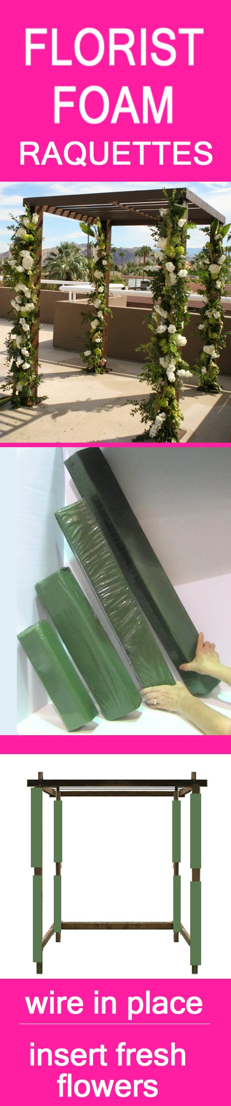 Raquettes work well because they are a slender length brick that is encased in a polyfilm that covers the whole surface of the florist foam. This slows down the evaporation of that precious water out into the air and keeps the water confined within the foam for the flower stems.