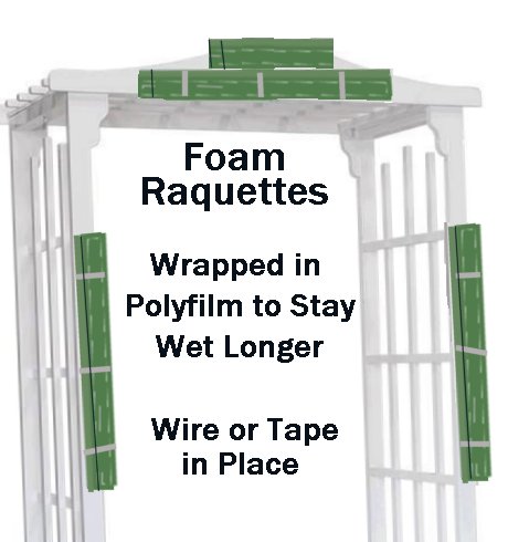 Cut flowers will stay fresh longer for your outdoor wedding if you use professional florist foam that is wired to the arch's framework. There are a variety of different sizes and shapes of cages and you need to choose the ones that are best suited for your arch's shape and size.