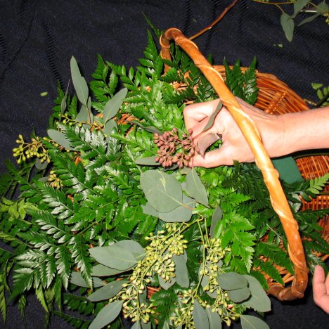 Don't be too perfect with your insertions of the seeded eucalyptus, as this is to be a casual look.
