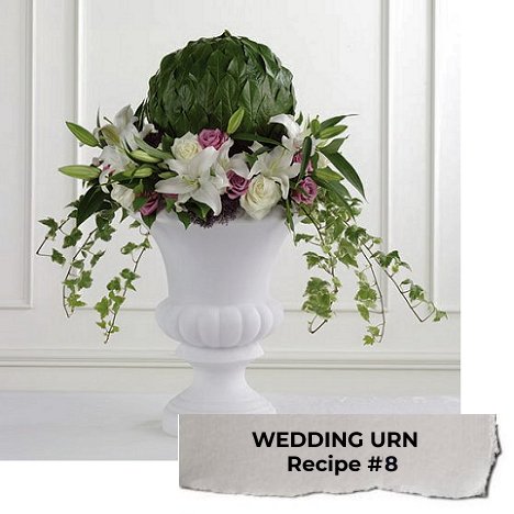 Wedding Urn Centerpiece; Learn how to design wedding flowers. Free tutorials for bridal bouquets, corsage, boutonnieres, centerpieces, outdoor flower arches