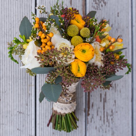 Yellow Hand Bouquet; Learn how to make bridal bouquets, corsages, boutonnieres, church decorations, altar decorations, pew markers, bridal table flowers,