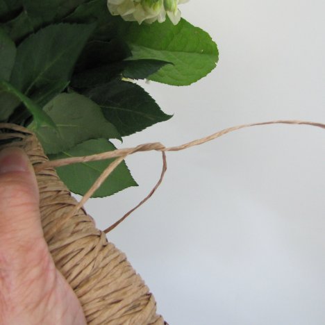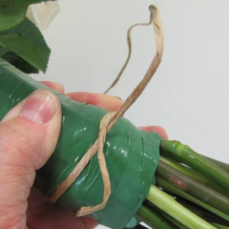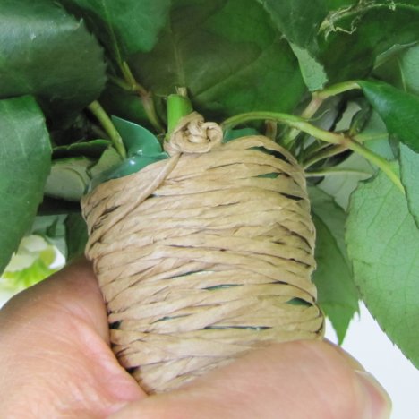 This paper covered wire comes in both natural brown and green and looks very cool on the handle of a bouquet. Because it's wired it's very easy to attach to the handle.