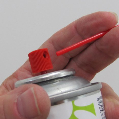 Attached to the side of the can is a red straw. This is inserted into the spray nozzle before using.