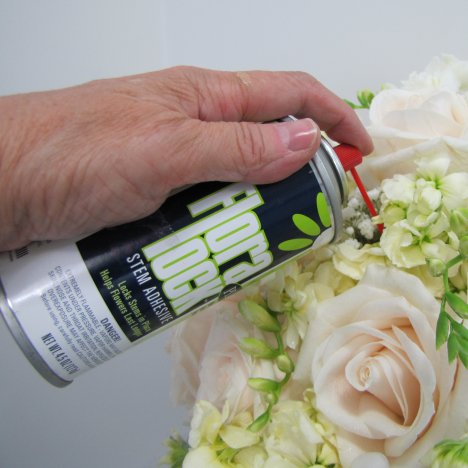 Floralock bouquet adhesive is a great product that locks bouquet stems into the florist foam, preventing them from slipping out. Wet stems and wet foam are slippery. Large bouquets have a lot of stems in a small space.