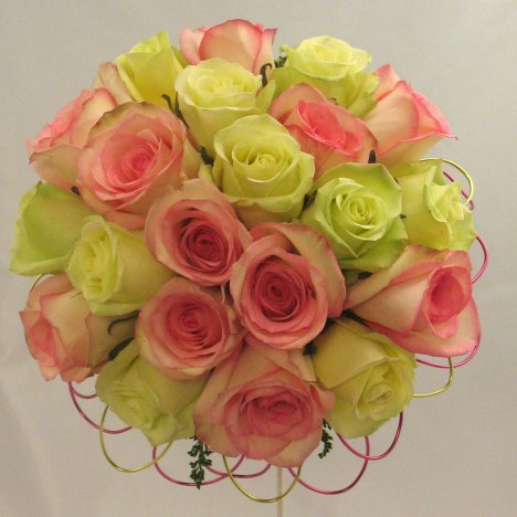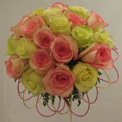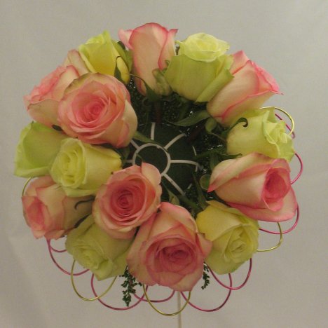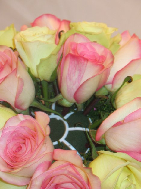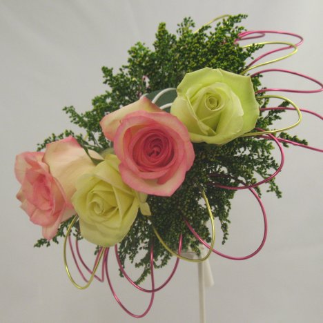 You can see I'm alternating the rose colors, inserting a pink rose, then a jade and then another pink, taking care that they are clustered close together.