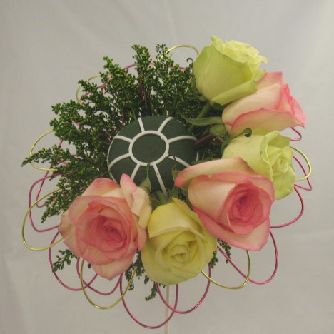 Those beautiful soft colors blend so well. If needed you can tuck some short solidego in to cover up any foam showing. Just keep it very short not to take away from the solid rose effect.