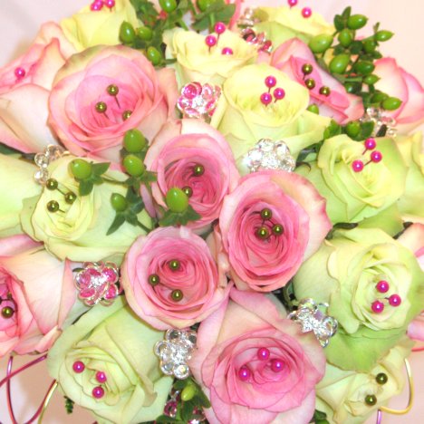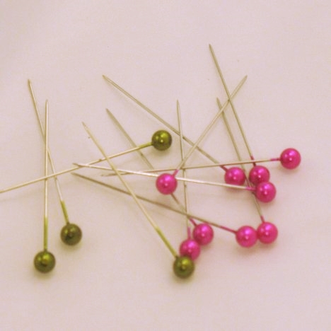 I love adding colored pearl pins to many of my wedding designs, including bouquets, corsages and boutonnieres. They come in a wonderful array of colors and add a sheen of color to flower heads.