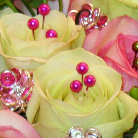 I inserted three pearl pins in each rose head.
