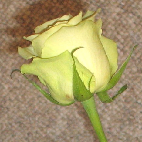 I'm going to use two different roses to create a lovely contrast of color in this bouquet design. The first rose is a two toned look, soft buttery yellow with peachy rose tips.